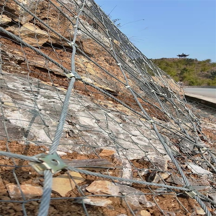 主动防护网是以钢丝绳网、铁丝格栅等材料构成的柔性防护系统,通过钢丝绳锚杆或支撑绳覆盖于斜坡表面,用于限制岩土体风化剥落和危岩崩塌。其通过柔性特征将荷载传递至整体系统,降低单根锚杆受力,并利用开放性结构保持坡面排水功能及植被生长条件。主要组件包括钢丝绳网、支撑绳、缝合绳及钢丝格栅网,型号涵盖GAR1、GPS1、GER2、TC-65A等系列。