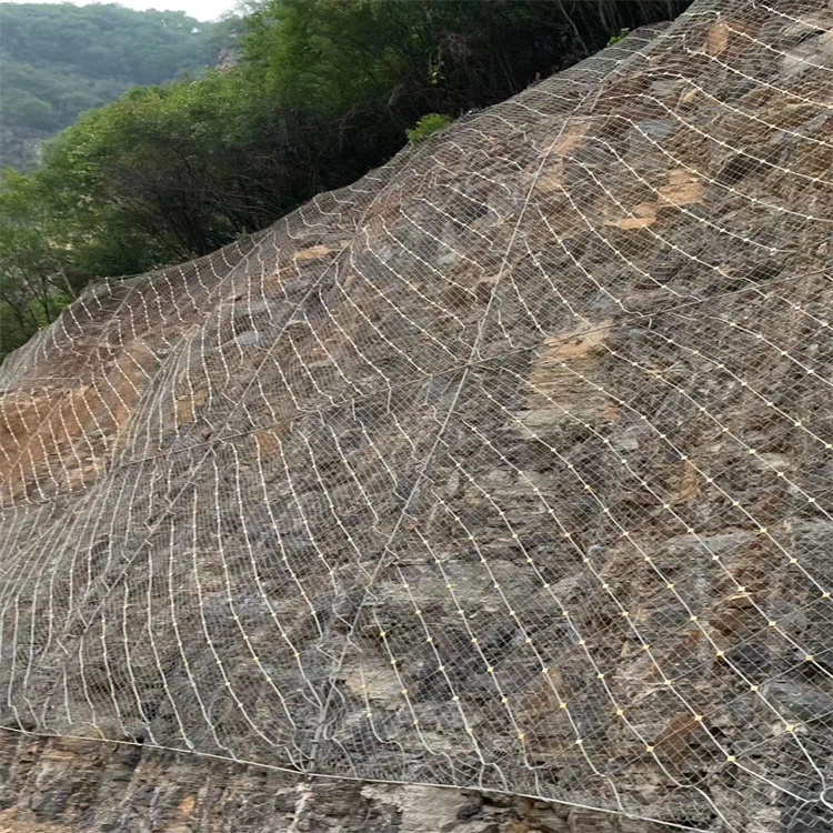 主动防护网是以钢丝绳网、铁丝格栅等材料构成的柔性防护系统,通过钢丝绳锚杆或支撑绳覆盖于斜坡表面,用于限制岩土体风化剥落和危岩崩塌。其通过柔性特征将荷载传递至整体系统,降低单根锚杆受力,并利用开放性结构保持坡面排水功能及植被生长条件。主要组件包括钢丝绳网、支撑绳、缝合绳及钢丝格栅网,型号涵盖GAR1、GPS1、GER2、TC-65A等系列。